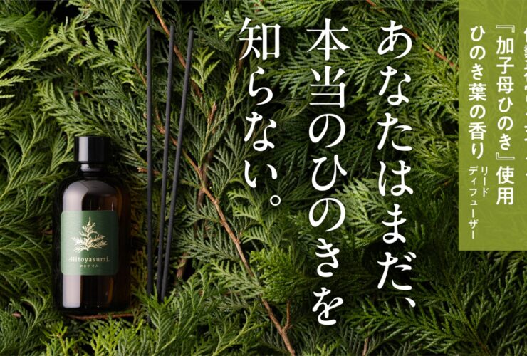 『葉』に宿る、ひのきの秘めたる香り。加子母ひのき葉リードディフューザー。