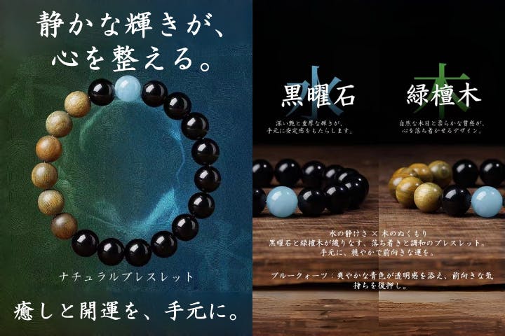 手元に穏やかさと幸運を。黒曜石と緑檀木のナチュラルブレスレット【3サイズ展開...