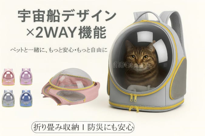 宇宙船デザイン × 2WAY機能の次世代ペットキャリーバッグ・もっと安心&自...