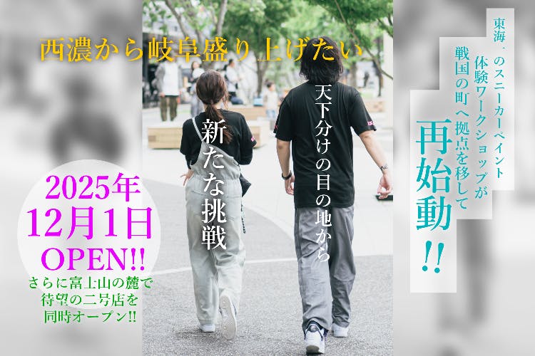 岐阜県大垣市で誕生したカスタムスニーカー工房「KIXR13」は、「ただ履くだけの靴」を「自分だけの一足」に変える体験を提供しています。オープン以来、多くのお客様から支持を集めてきましたが、狭い工房のため1日に2組しか対応できず、予約を断ることも多い状況でした。そんな中、KIXR13は新たな挑戦として、12月に岐阜・垂井町への移転と静岡・富士宮市での2号店オープンを計画しています。