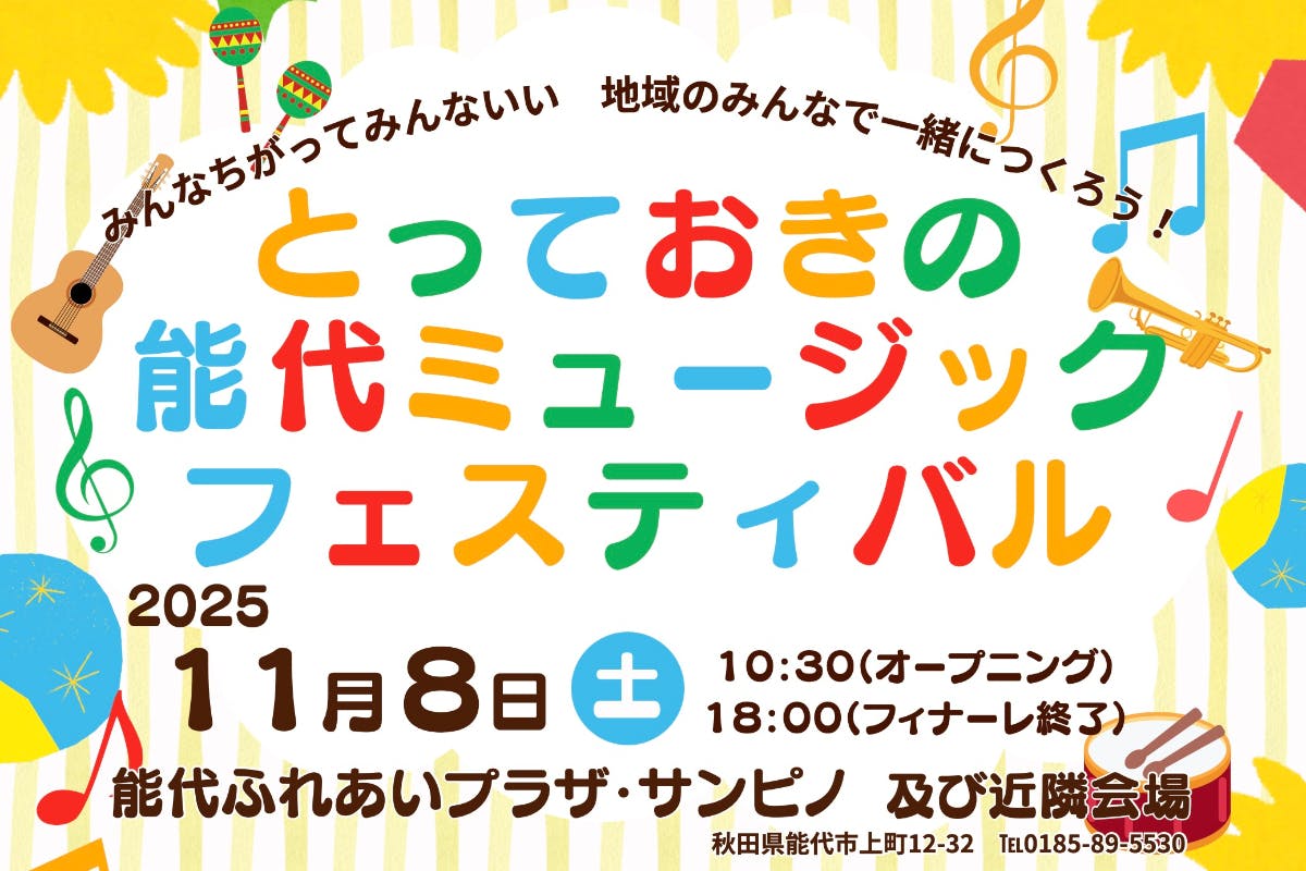 2025年11月8日(土)、秋田県能代市で「とっておきの能代ミュージックフェスティバル」が開催されます。このイベントは、2022年から続く「能代JAZZフェスティバル」を発展させ、仙台発祥の「とっておきの音楽祭」のコンセプトを取り入れた新しい挑戦です。能代ふれあいプラザサンピノをメイン会場に、約20組、総勢約100名のプロ・アマチュアの音楽演奏者やパフォーマーが出演予定で、障がいの有無に関わらず多様な参加者が一堂に会します。