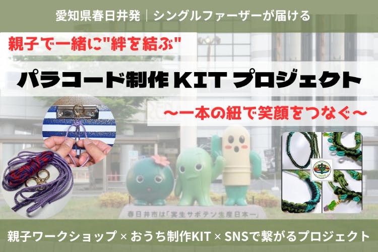 愛知県春日井市で活動するシングルファーザーの大塚将太さんが立ち上げたクラウドファンディングプロジェクトをご紹介します。大塚さんは、忙しい日々の中で「親子で過ごす時間の大切さ」を強く感じ、パラコードを使ったハンドメイドブランド「JOY REBORN」を運営しています。このプロジェクトは、親子が一緒にパラコードを編むことで、会話や笑顔が自然に生まれる時間を提供し、親子の絆を深めることを目的としています。