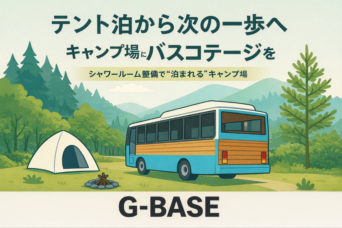【手づくりのキャンプ場を次の一歩へ|シャワールーム&泊まれるバスコテージ計画】