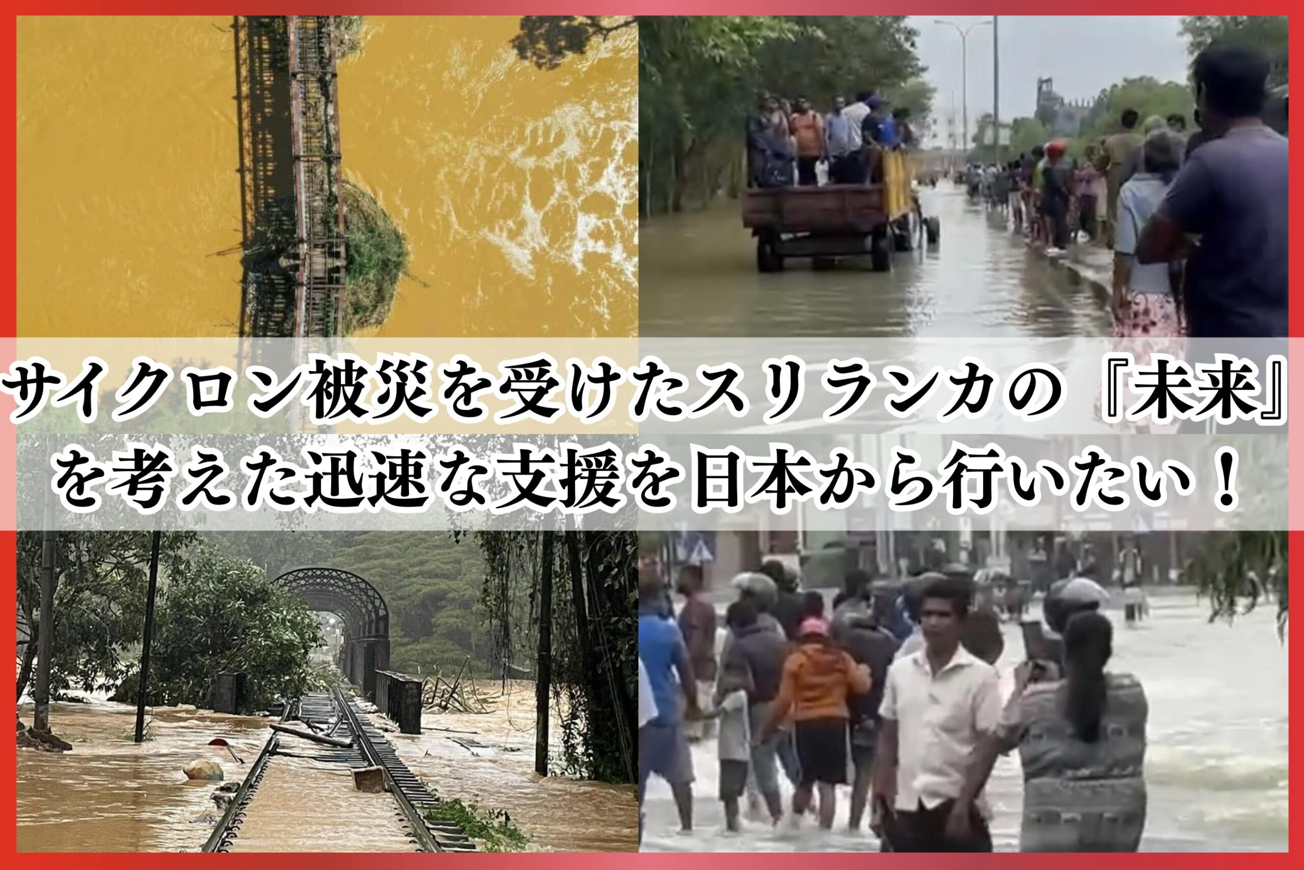 2017年からスリランカでデング熱予防に取り組んでいるNPO法人S.O.L.は、2024年に現地で公式NGO登録を完了し、2025年3月からは世界の人びとのための JICA 基金活用事業も実施されています。そんな中、2023年11月末にサイクロン「ディトワ」がスリランカを直撃し、過去20年間で最悪の洪水被害が発生しました。国土の約3分の2が浸水し、多くの家屋が全半壊、死者や行方不明者も多数にのぼっています。現地のインフラは機能停止し、農地も壊滅的な被害を受けているため、復興には多くの支援が必要な状況です。S.O.L.は現地との強い信頼関係を活かし、ニュースだけで終わらない長期的な支援を目指されています。