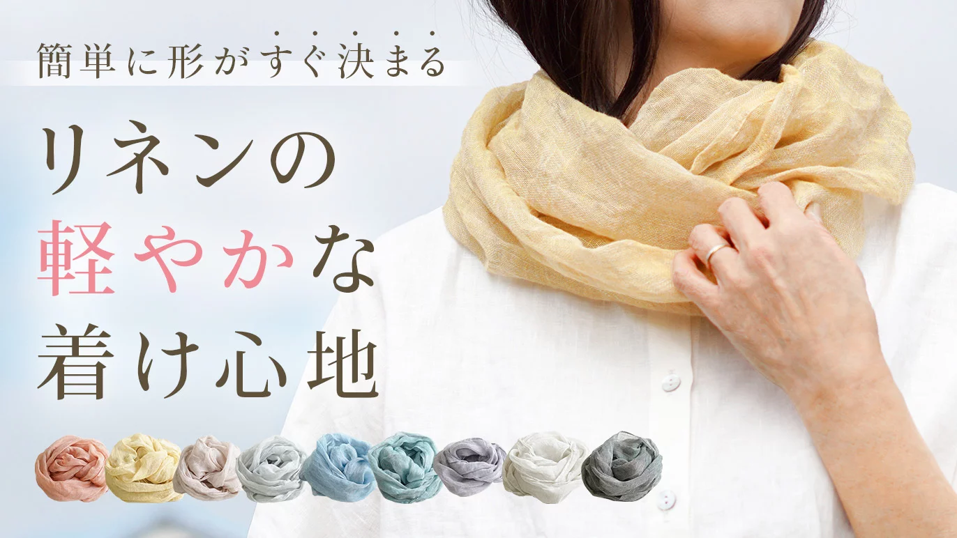 軽やかリネンガーゼがおしゃれに首元カバー。洗うほど馴染む、2wayサークルストール【日本製】