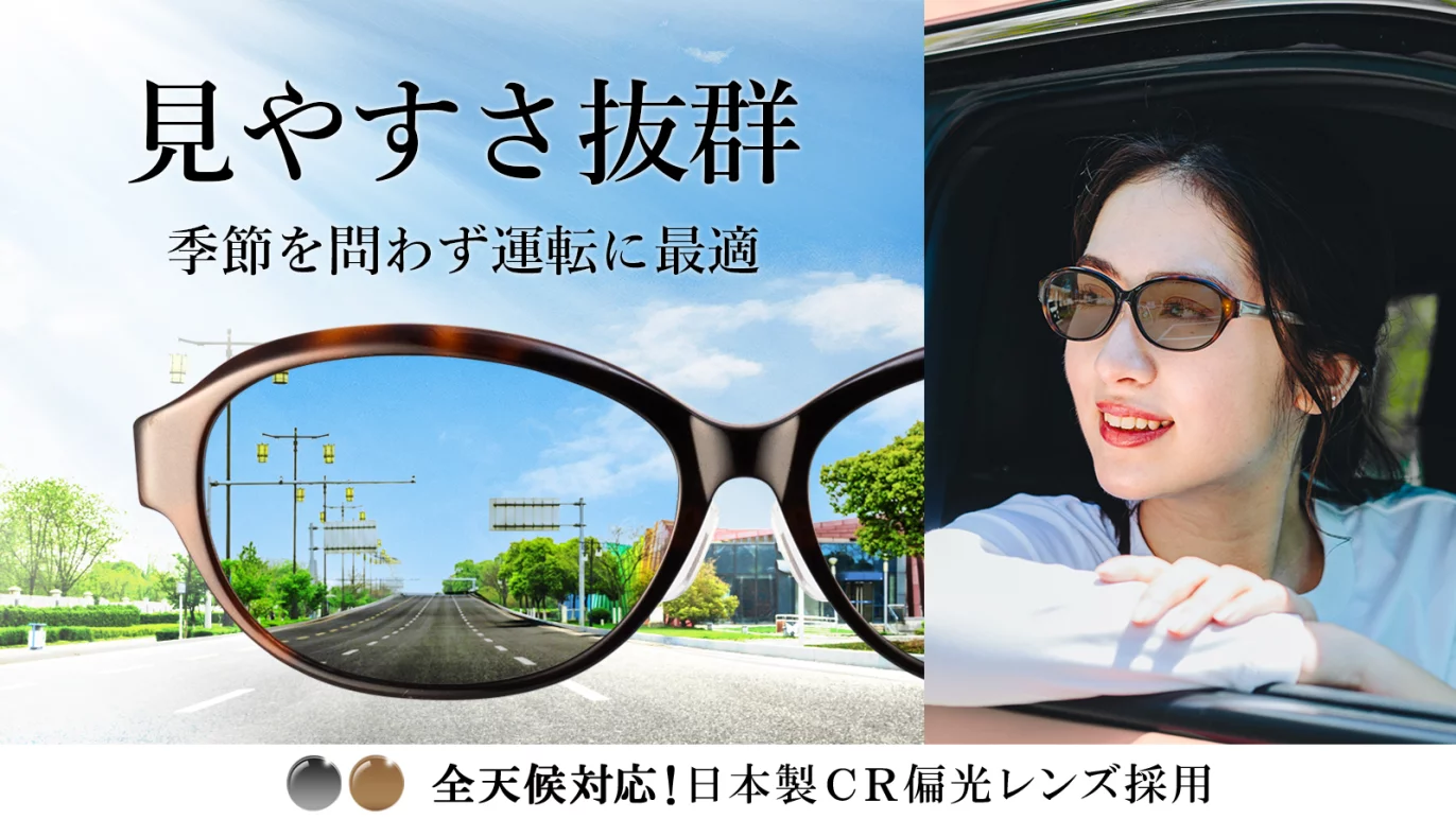【光触媒加工付限定商品】 眩しさを抑えて自然に近い景色で信号機や標識も見やすい女性のためのサングラス