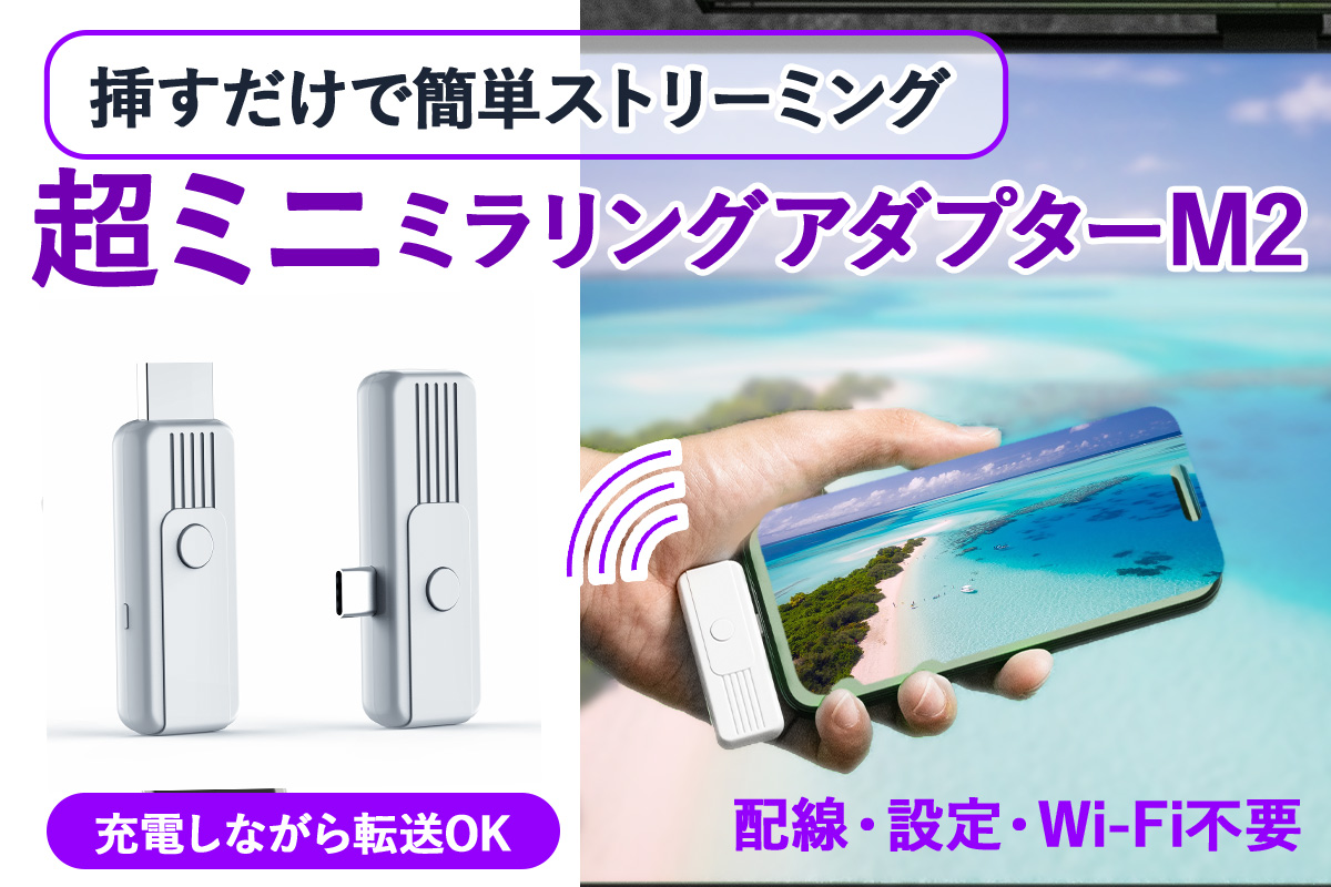 遅延わずか0.1秒!挿すだけで簡単に大画面へミラーリング!充電しながら長時間使用OK、配線・設定・Wi-Fi不要の超ミニミラーリングアダプター