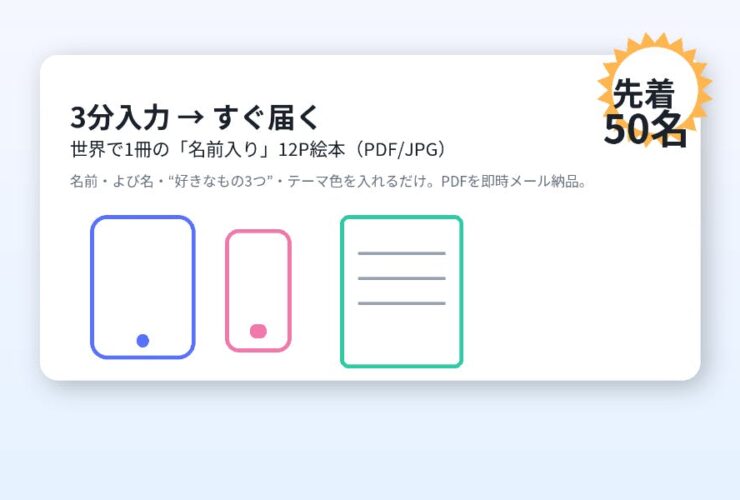 3分入力で即届く・子ども向けパーソナル絵本(PDF/JPG)
