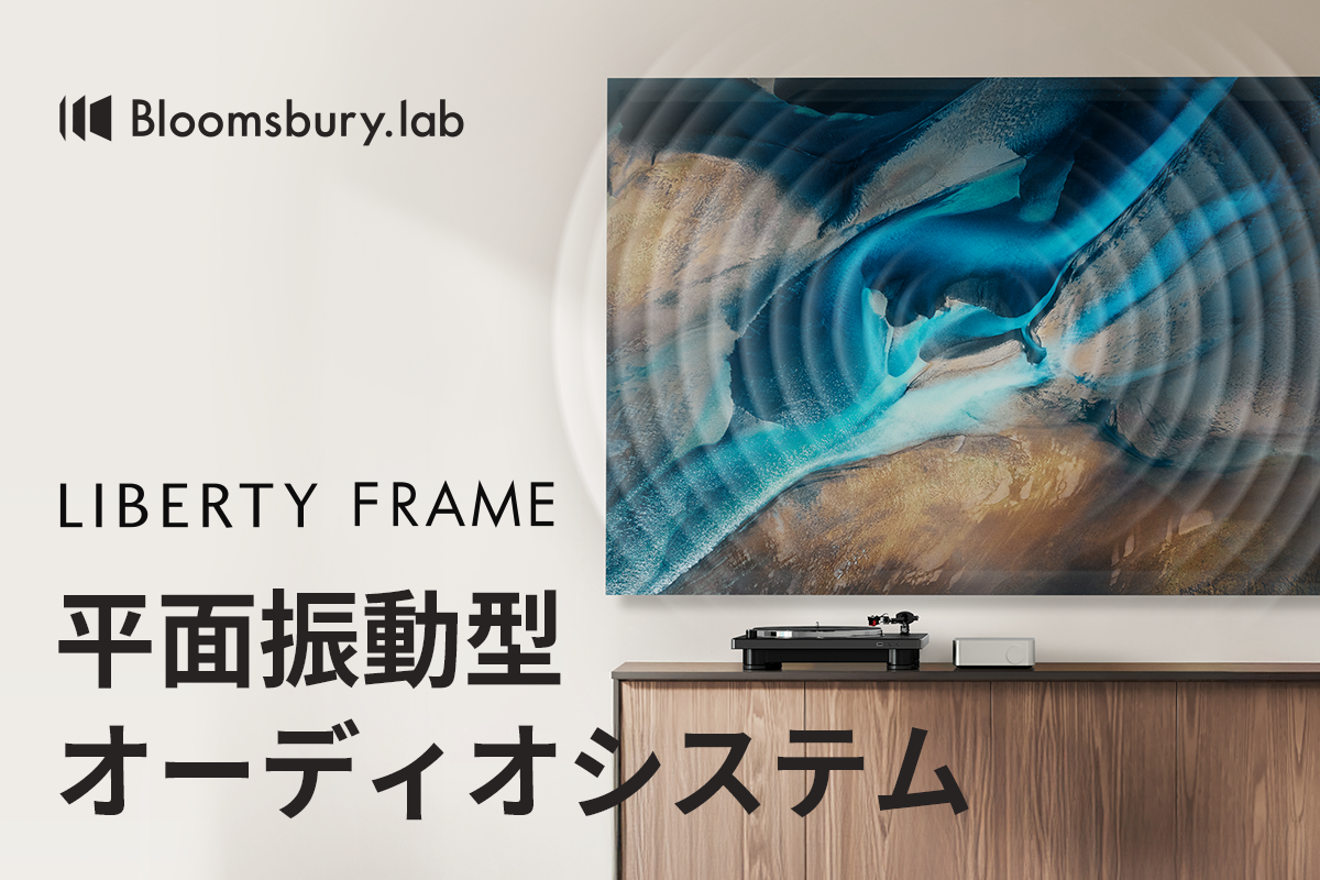 今回ご紹介する「リバティフレーム」は、Bloomsbury Labが開発した独自の平面振動型オーディオシステムです。従来のスピーカーが一点から音を放射するのに対し、リバティフレームはパネル全体を振動させて音を空間に均一に拡散します。そのため、部屋のどこにいても自然でバランスの取れた音場を楽しめるのが特徴です。さらに、6基のドライバーユニットが複合的な表面振動を生み出し、クリアで安定したサウンドを実現しています。