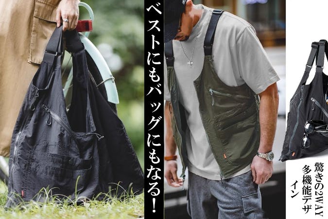 両手が空く。ベストにもバッグにもなる!驚きの2WAY多機能デザイン