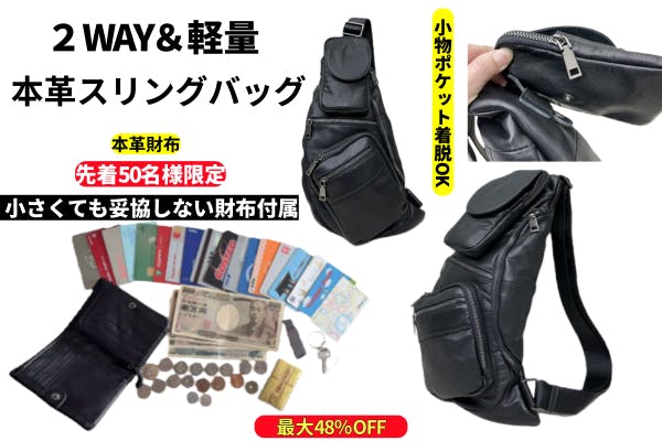 本革スリングバッグ|小物ポケット着脱OK!2WAY&軽量&牛革多機能ミニ財布